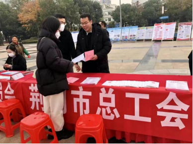 12月4日,湖北邦伦律师事务所宋海龙律师在荆门市总工会的法治宣传中发放宣传教育资料,提高职工依法维权能力,为推进法治建设奉献力量。
