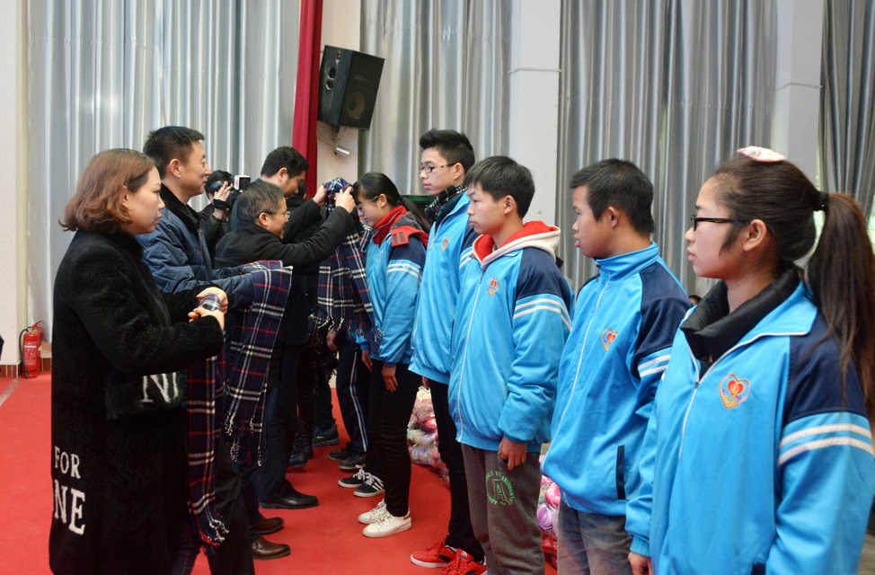 法制课结束后,市律协领导为全校121名在校学生赠送了根据每个孩子的尺码定制的棉鞋和围巾,让他们感受到了来自社会的关爱和温暖。